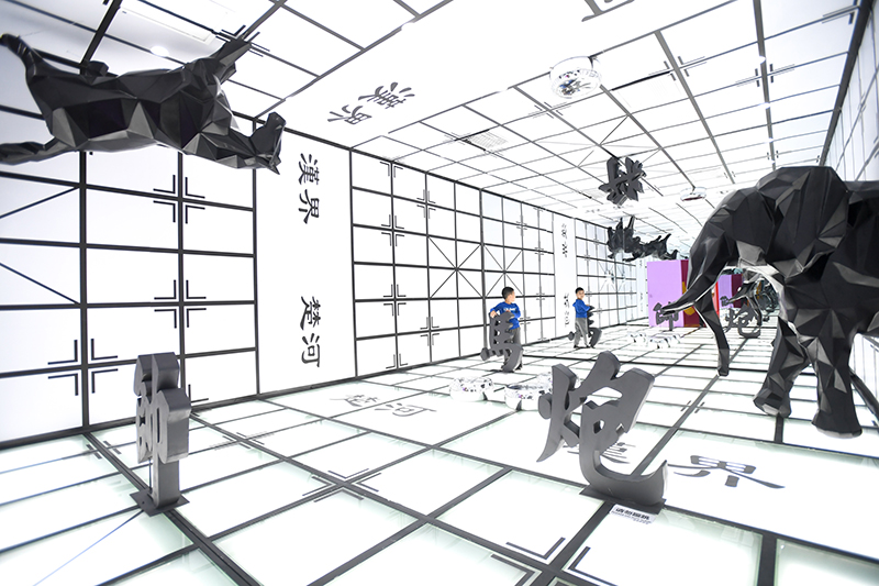 2019年9月21日,小朋友在湖南省長沙市“字在其中”漢字國潮藝術展上參觀。新華社記者 陳澤國 攝