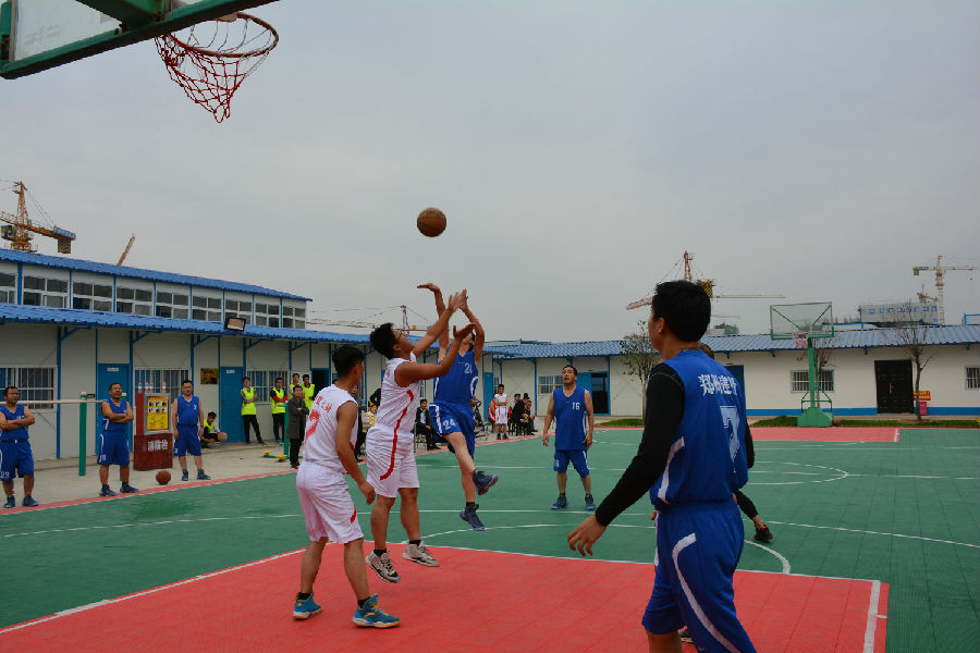 本次比賽共有文博中心兩個項目的施工及監(jiān)理單位共5支球隊參加。比賽實行循環(huán)賽制,即每支球隊均需同其余4支球隊進行比賽,比賽實行積分制,每勝一場積3分,負一場積0分。每場比賽按照籃球比賽規(guī)則,共分為四節(jié),每節(jié)10分鐘。比賽專門聘請了專業(yè)體育裁判為比賽進行執(zhí)法。