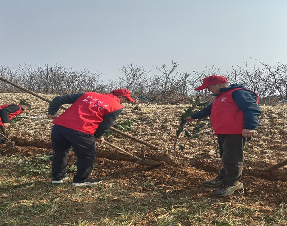 3月12日,陽光明媚,春意盎然,黨員志愿服務(wù)隊士氣高昂,手拿鐵鍬、水桶、掃把等工具,熱情高漲地投入到植樹活動中。
