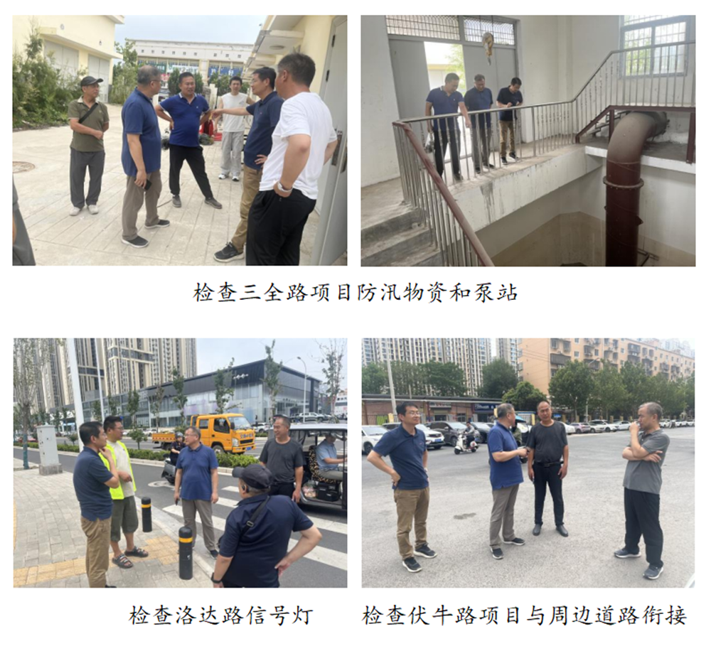 黃志澎分別檢查了魏河北路項目的排水、麗水路項目的橋梁架設(shè)和道路施工、洛達路項目和荷花街項目與周邊道路的安全銜接、三全路項目的河道鋪砌和下穿鐵路涵洞泵站,并查看了防汛物資準備情況。