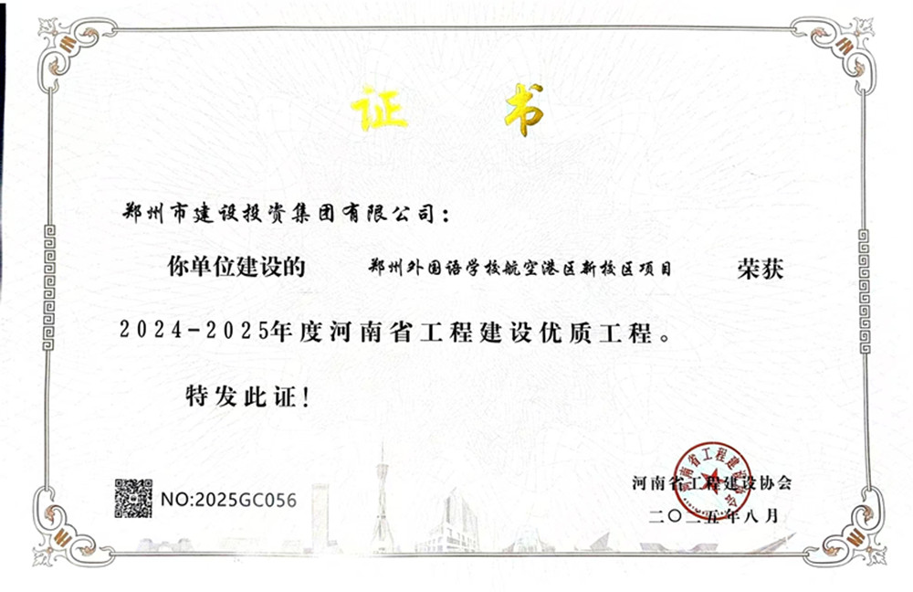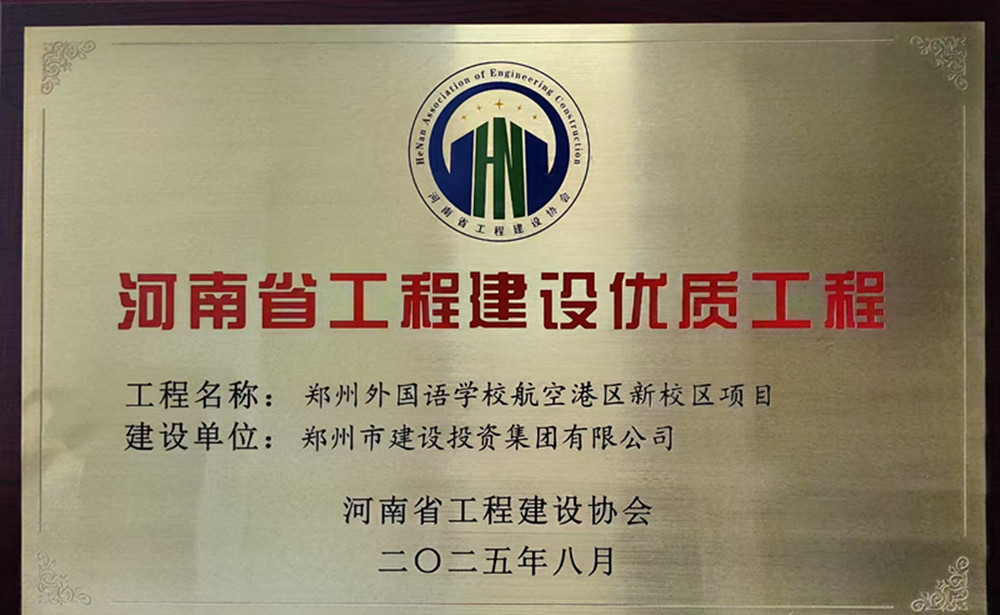 鄭州外國語學(xué)校航空港區(qū)新校區(qū)項(xiàng)目榮獲河南省工程建設(shè)優(yōu)質(zhì)工程