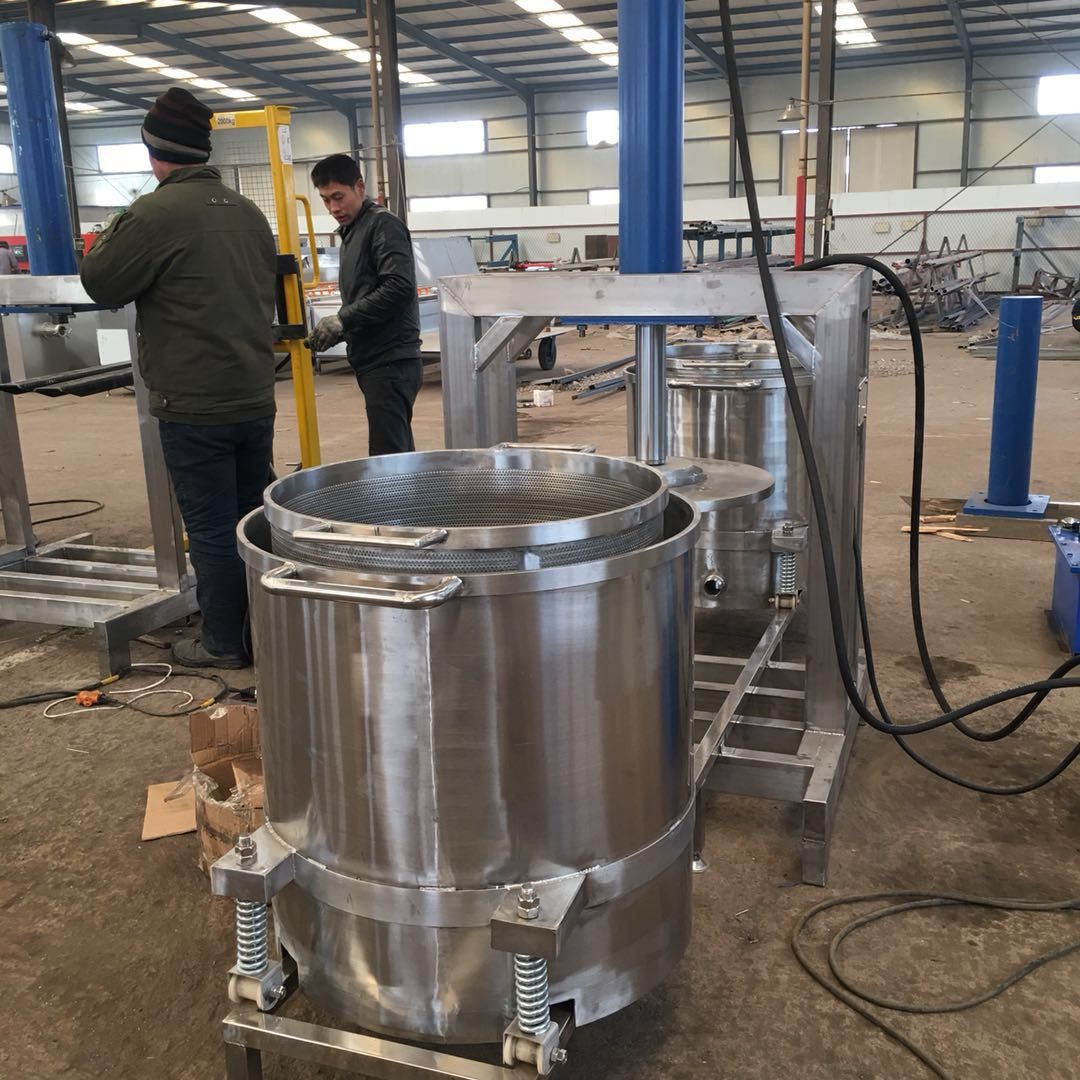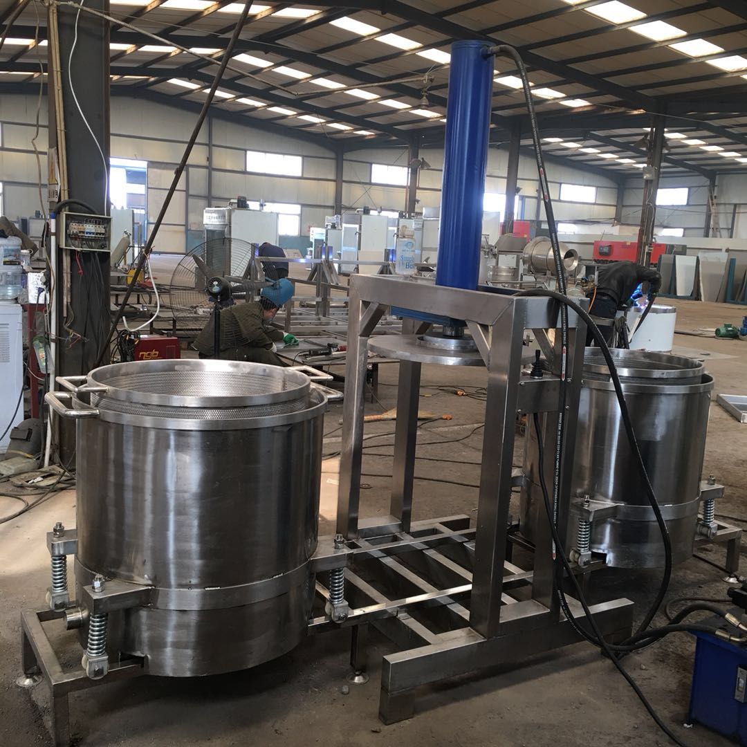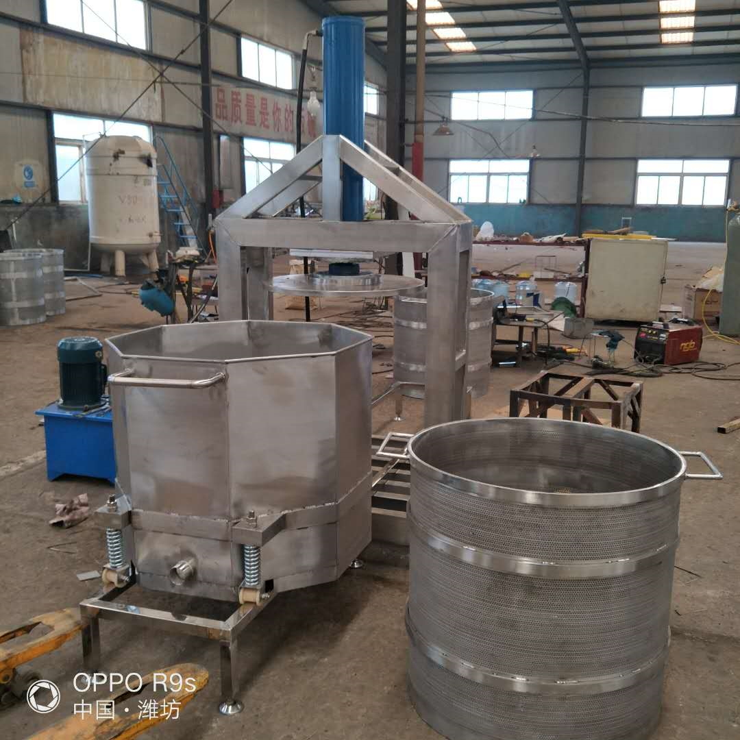 1、液壓壓榨機立式 雙桶輪換式壓榨機 醬菜腌漬菜壓榨脫水300L采用無軸螺旋、與物料接觸面小,摩擦力低,可以提高擠壓效率。并且無堵塞,無纏繞現象;