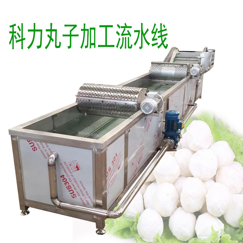 3、丸子冷卻槽 通過鏈條將丸子輸送到冷卻槽內的肉丸須在冷卻槽內迅速冷卻設冷卻槽內的水為開放型的,即進入冷水而溢出熱水,冷卻槽有進水口、出水過濾口,成熟后的肉丸在冷卻槽內冷卻槽內水溫始終在20~25度左右,丸子冷卻冷卻后可直接進入速凍車間掛冰冷凍或者風干油炸。